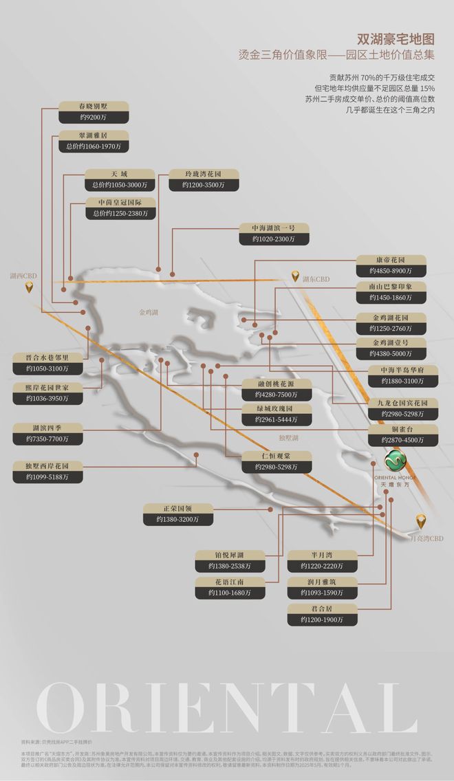 苏州豪宅的价值基因,始终与双湖板块深度捆绑。园区作为苏州房价高地,而双湖板块更是高地中的顶点,天熠东方售楼处电话☎:【预约☎】“园区最贵,双湖为王”早已成为楼市共识。由湖西CBD、湖东CBD和月亮湾CBD组成的“双湖黄金三角”,更是这片价值高地的核心,框住了苏州70%的头部豪宅,堪称园区30年发展的价值总集。