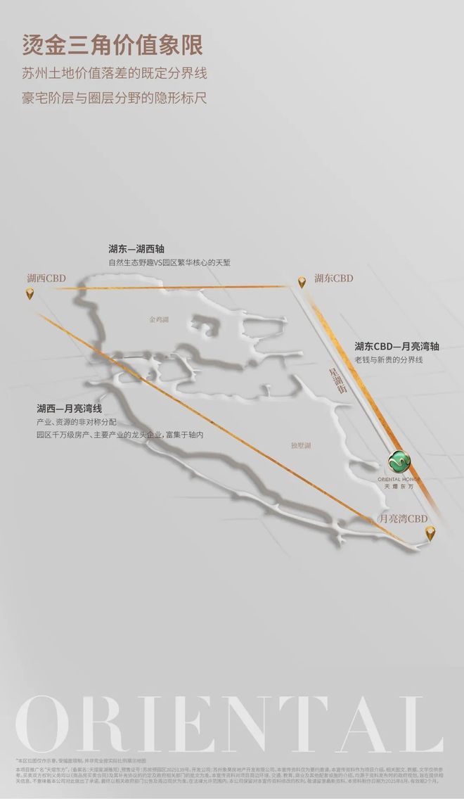 黄金三角的三条边,是苏州城市价值的等高线,更是圈层分野的隐形标尺。湖东—湖西轴如同园区“长安街”,串联东方之门到国际博览中心,南北一轴之隔便有千万价差鸿沟;湖东CBD—月亮湾轴沿星湖街延伸,轴内代表老牌权贵与金融资本,越近双湖资产越保值;天熠东方售楼处电话☎:【预约☎】湖西—月亮湾线则是“资源动脉”,串联苏州中心、月亮湾和独墅湖高教区,集中了园区80%的优质资源,轴内外资源呈断层式差距。三角之内是苏州豪门俱乐部,三角之外仅是高端改善,天熠东方正处大双湖CBD的C位,占据着无可复制的核心地段。