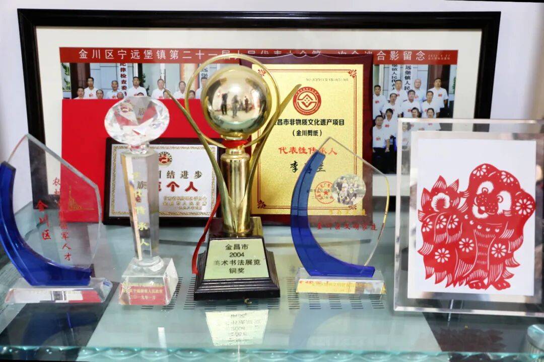 这份坚守与付出,也让她收获了诸多认可,金昌市民族团结进步模范个人、金川区农村实用领军人才、金昌市民俗展剪纸比赛金奖…… 这些荣誉不仅是对她精湛技艺的肯定,更承载着对她 “把手艺用在乡村、把匠心融进生活” 的赞誉。