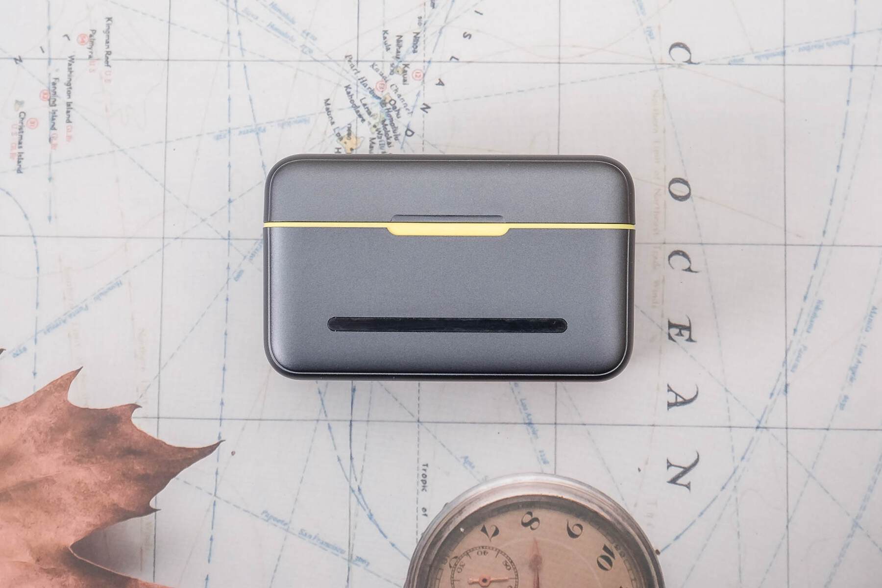 先看看充电盒,依旧采用了小巧便携的设计,不同的是第一代带有一个小的显示屏,这次没有了,仅有四个LED灯提示,通过这里可以直观看到电量情况。